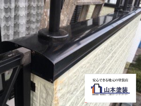 対処法として、まず手すり継ぎ目のコーキングを打ち替え、水の侵入を防止します。さらに、笠木の下端もコーキングで塞ぎ、サビ汁の再発を防ぎます。