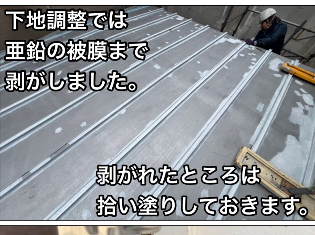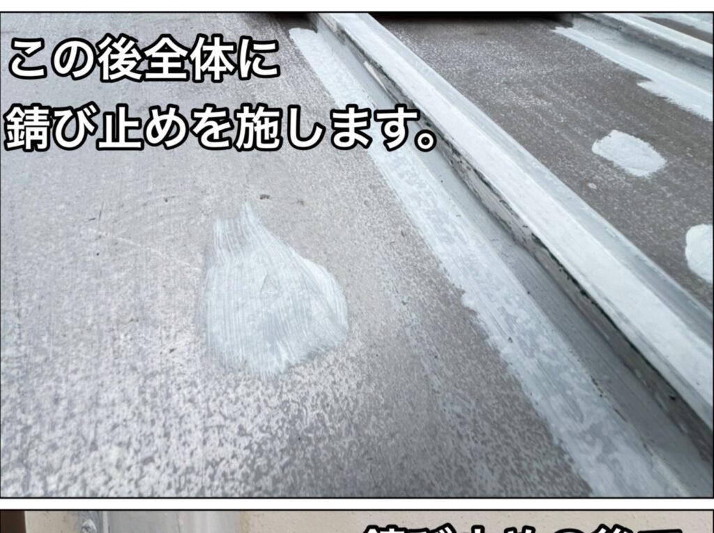 塗り替え時には、これらの白い粒を手作業でしっかり擦り落とし、ケレン(研磨)後に錆止め塗料と仕上げ塗料を塗布します。