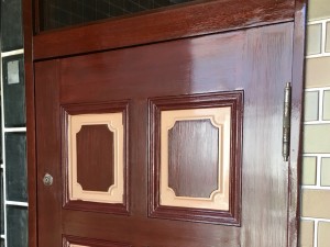 どうやらドア内部からの空気の流通が原因のようです。そこでクリア塗装は諦めて通常のシリコン塗装で仕上げることにしました。着色塗装はしっかりしているので、染み込み止めを塗装してから色を調整した塗料を塗ることとします。