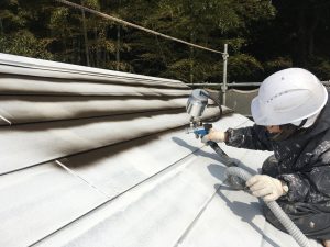 さてガルバリウム鋼板はどうでしょう。まだ塗膜が剥がれたという事例は見たことがありませんが、塗装されている以上メンテナンスフリーな材料などは絶対に有りません。塗膜が密着している内に、10年から15年のあいだには塗装が必要だと思われます。